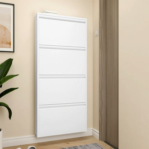 In stockWall Shoe Rack 4 Layer 1366 White Color: WhiteDimensions (W x D x H): 65.5 x 12.2 x 136.5cm Keep your entryway neat and stylish with this sleek 4-t...
