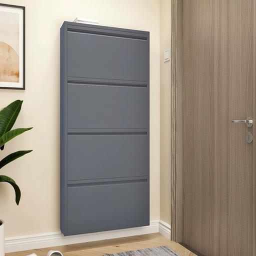 In stockWall Shoe Rack 4 Layer 1366 Grey Color: GreyDimensions (W x D x H): 65.5 x 12.2 x 136.5cm Keep your entryway neat and stylish with this sleek 4-tie...