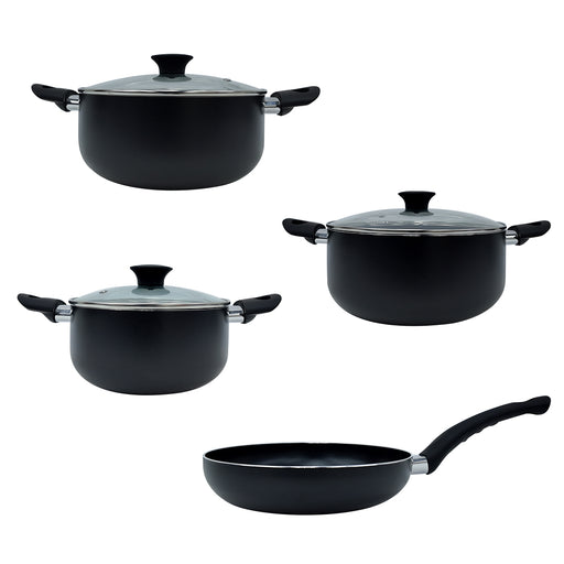 In stockCookware Set LSS-7 7-Pieces (With Lids) Cookware Set Color: BlackMaterial: Aluminum (Non-Stick)