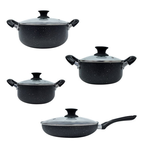 In stockCookware Set LS-8 8-Pieces (With Lids) Cookware Set Color: BlackMaterial: Aluminum (Non-Stick)
