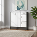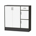 Bring sleek organization to any room with this versatile Two-Tone Storage Cabinet. Featuring a clean, contrasting design of white doors and a dark frame, it seamlessly fits into modern or contemporary decor. The unit includes a large double-door cabinet, a secure locking top drawer, and two smaller single-door cabinets below, providing varied storage options for books, supplies, clothing, or household essentials.