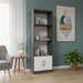 The unit features a dark grey frame and a contrasting white two-door cabinet at the base. The top section includes three spacious open shelves, perfect for displaying books, files, or decorative items. The lower closed cabinet provides essential hidden storage for supplies, clutter, or cleaning materials.